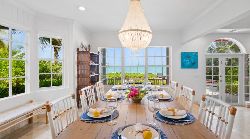 Welcome to Sea Star Villa, your own private oasis on the water! A beautifully appointed villa, well-maintained with fresh & clean furnishings, 3 bedroom, 2.5 bathroom oceanfront home is nestled in a small cove, offering breathtaking views of Elizabeth Harbour, close enough to see the monument and Chat ‘n Chill on Stocking Island. Step inside and be captivated by the spacious open concept living/dining/kitchen area, perfect for entertaining guests and spending time with family. The master suite boasts a spacious balcony overlooking the serene waters, providing a peaceful retreat after a long day of exploring. Outside, enjoy al fresco dining on the covered porch area while watching boats drift by or take a stroll down to the private gazebo and soak in the tranquility of waterfront living and dip your toes in the sea via stone steps into warm ocean waters. Daytime mooring is available in front of the villa as well as overnight dock rental at the marina. Sea Star is an active profitable vacation rental property offering an excellent investment opportunity for any purchaser going forward.